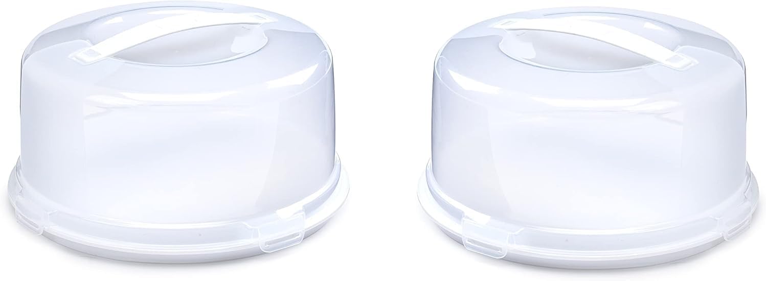 ✔️ INGENIOUS DESIGN SPACE SAVER: Ergonomic carry handle No more struggling to carry your cake/food, just use the easy-carry handles, which are double and also folds in place when not in use. Food containers with lids allows you to arrange them in your kitchen cabinets or pantry neatly. Say goodbye to cluttered spaces and enjoy the convenience of an organized kitchen.