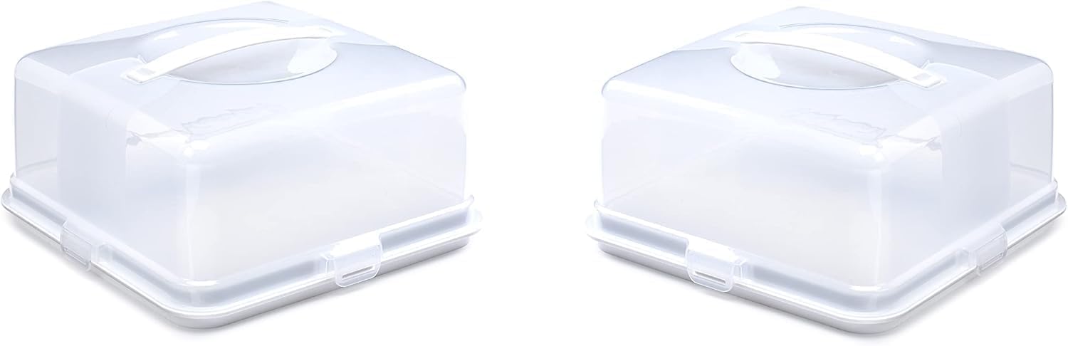 Airtight BPA-free Plastic Reusable Storage Cake Box | Portable Takeaway Food Storage Container with Lid | Cake Carrier with Handle Box | Lockable Cover Box Multipack (Plastic, Three Pack Square)