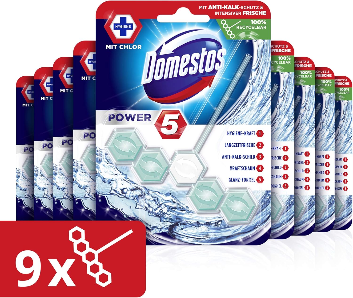 Domestos Power 5 Ocean Toilet Rim Blocks, Pack of 9