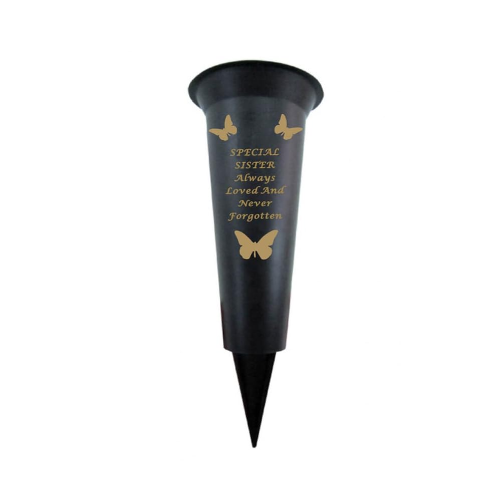 Memorial Grave Vases Ornaments Plastic Flower Holders - Butterfly Spike Grave Flower Vase Holders with Funeral Verses for Your Loved Ones - Black (Sister)