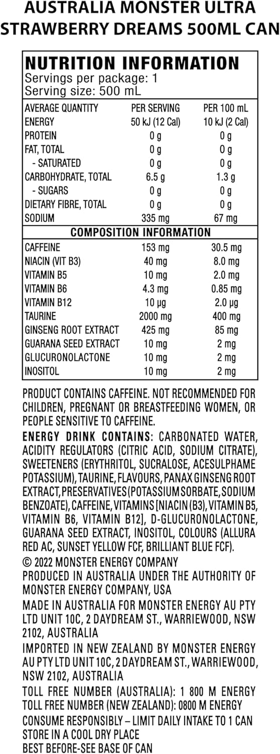 Monster Energy Drink Ultra Strawberry Dreams 24 x 500ml