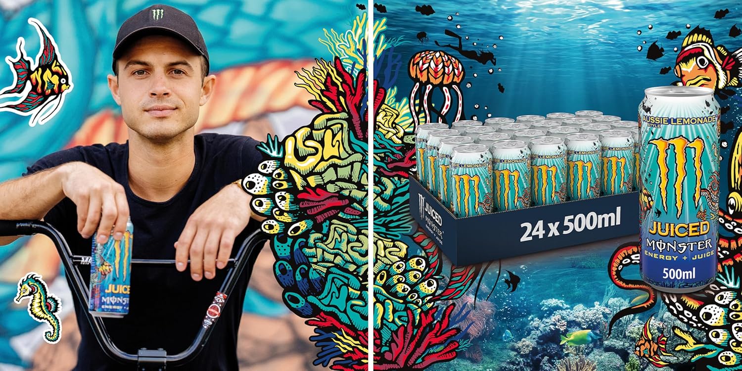 Monster Energy Juiced Aussie Style Lemonade - Caffeinated Energy Drink with Refreshing Citrus Flavour - in Practical Disposable Tins (12 x 500 ml)