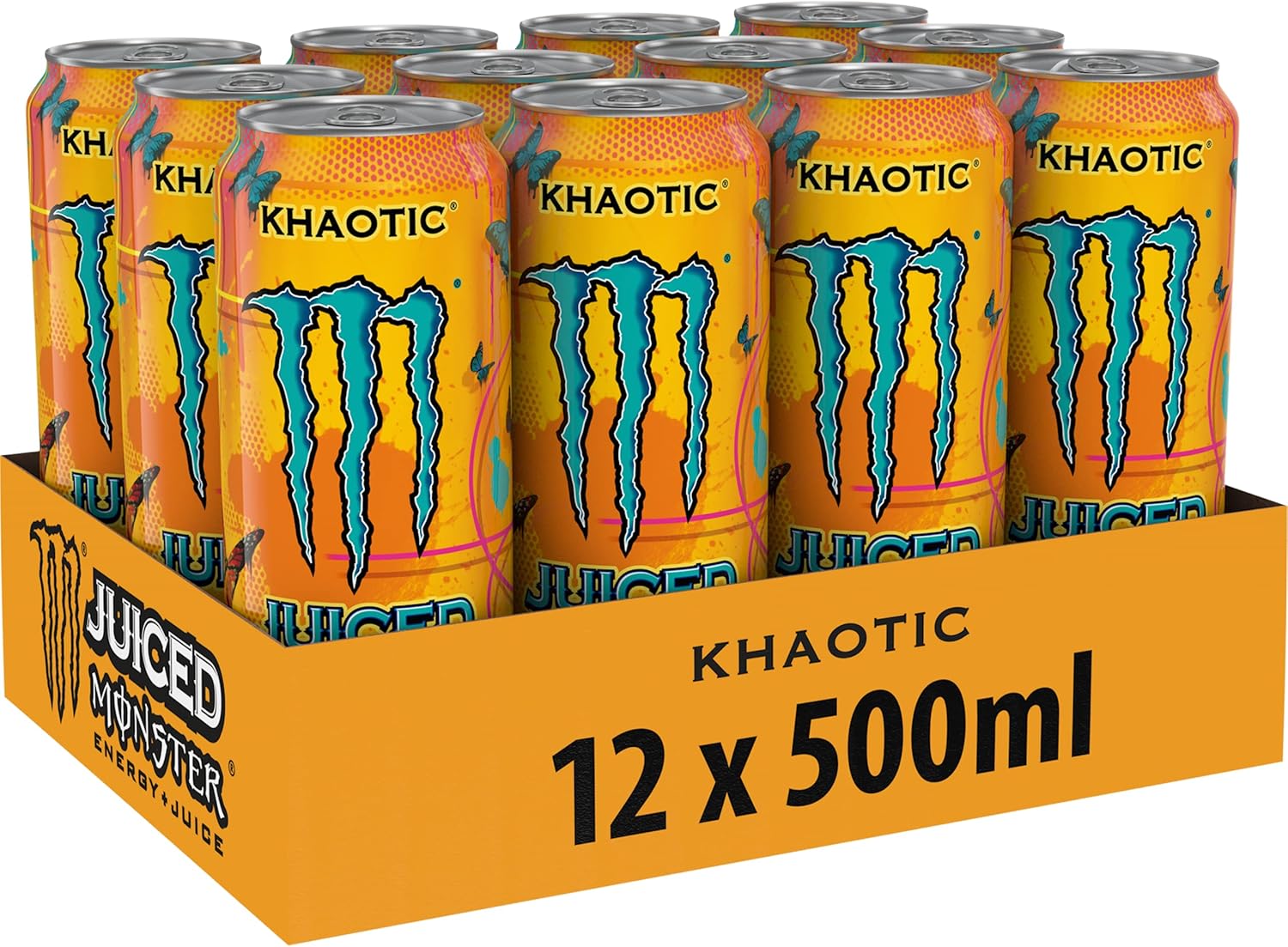 Monster Energy Juiced Khaotic - Caffeine Energy Drink with Tropical Citrus Flavour - in Practical Disposable Cans (12 x 500 ml)