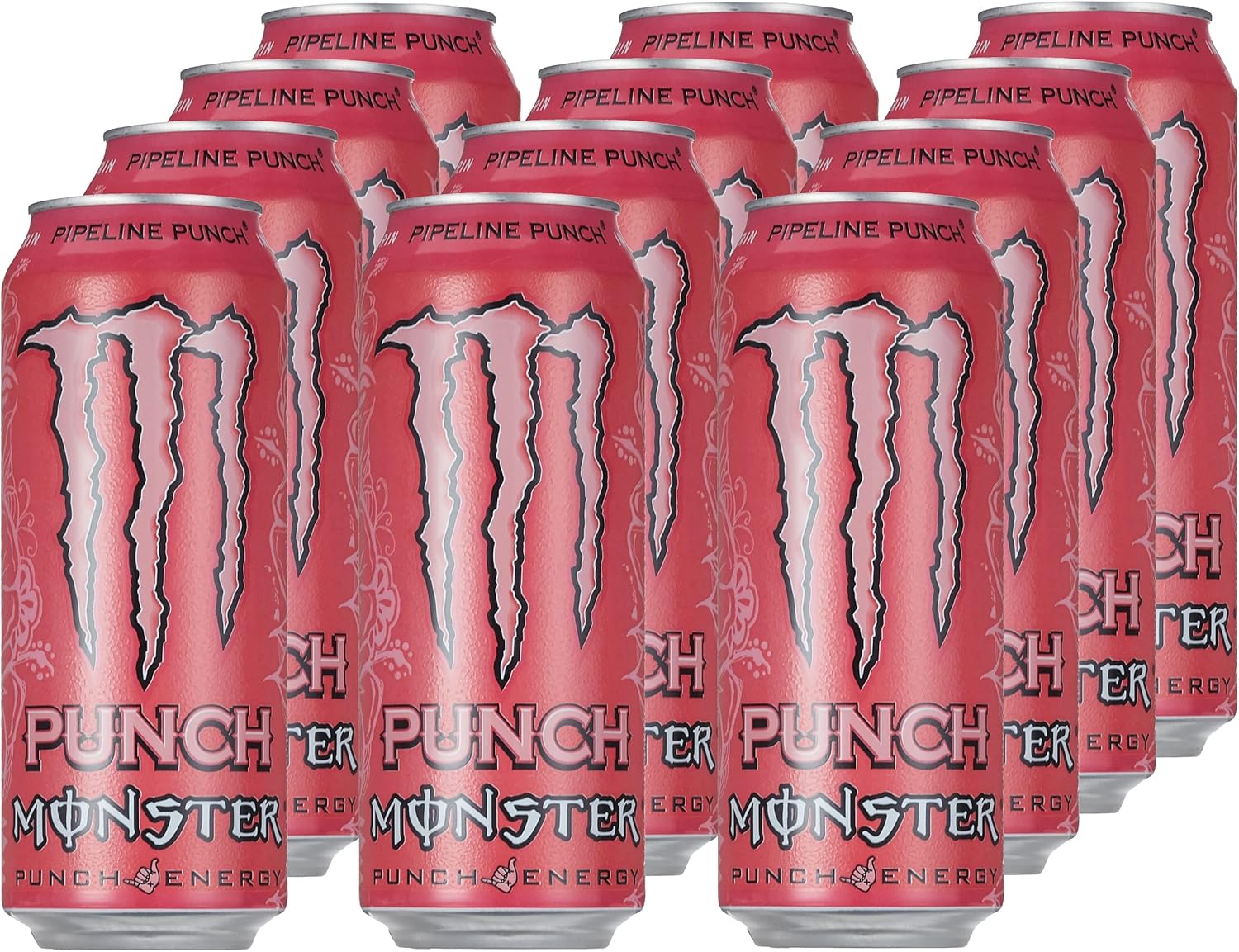 Monster Energy Pipeline Punch - Caffeinated Energy Drink with Refreshing Punch Flavour of Passion Fruit, Orange and Guava - in Practical Disposable Tins (12 x 500 ml)