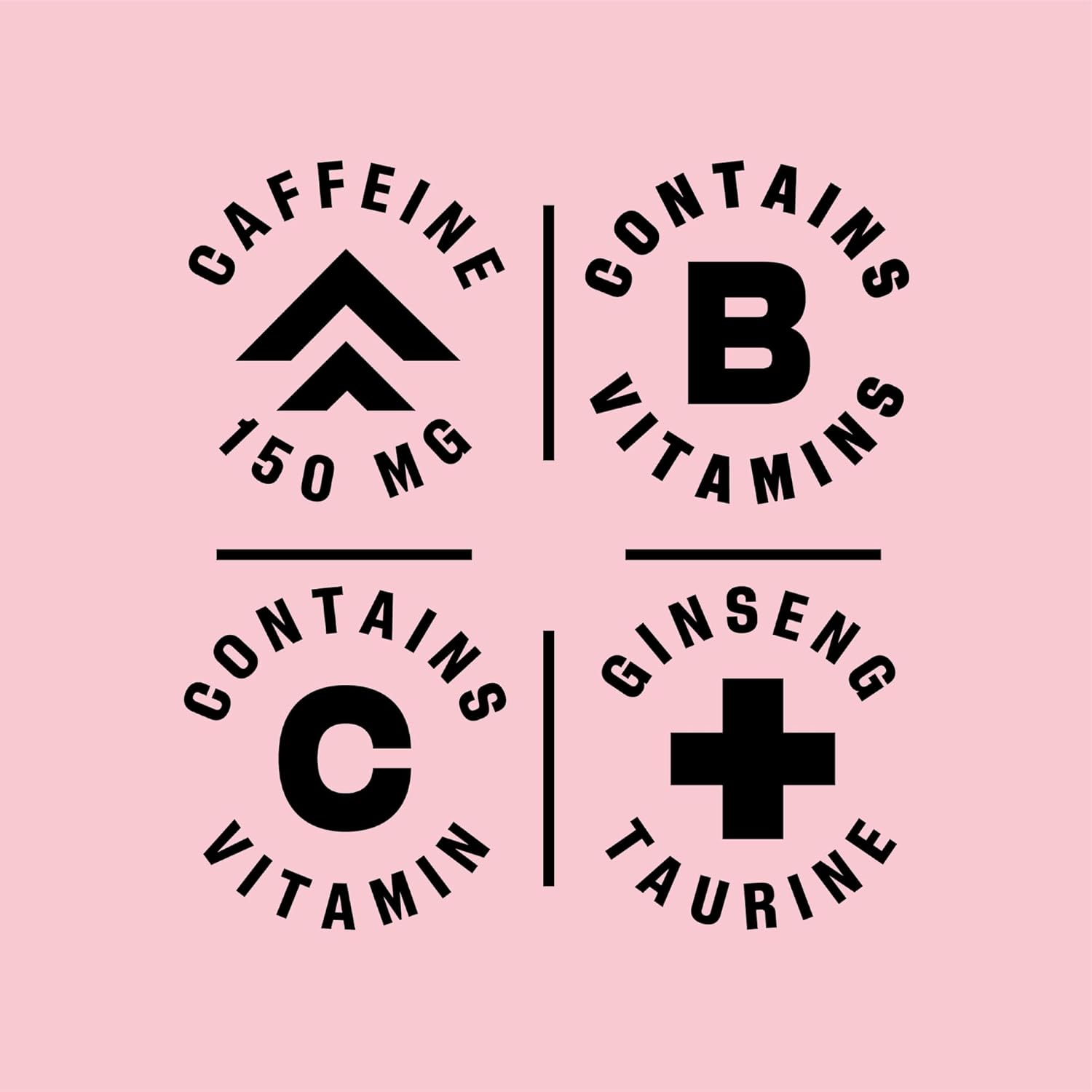 STAY SHARP, Contains 160 mg caffeine per 500ml can. Is designed for those who lead active lifestyles – from athletes to rock stars. Helps you stay sharp and hustle so you can keep your eye on the prize