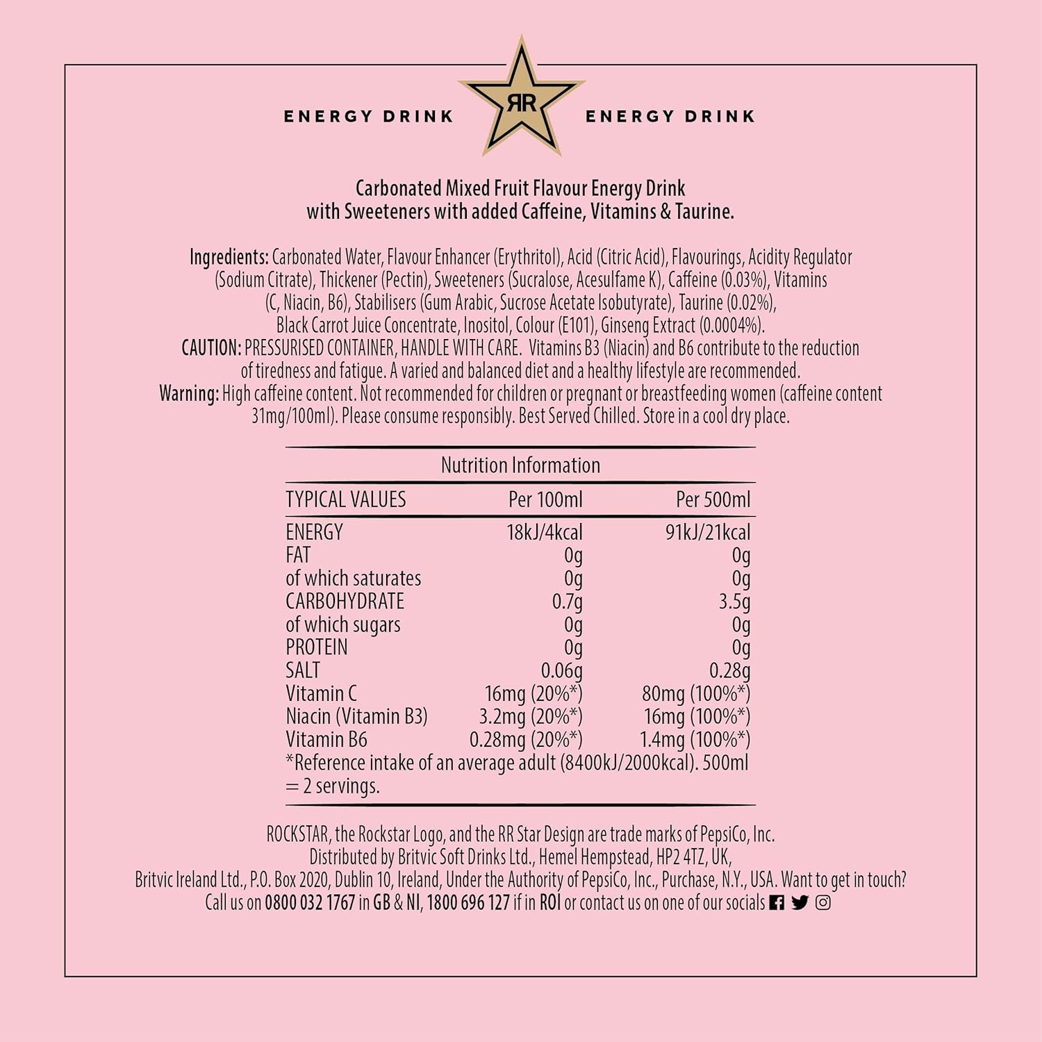 Rockstar Refresh Energy Drink Strawberry & Lime, 12 x 500ml cans