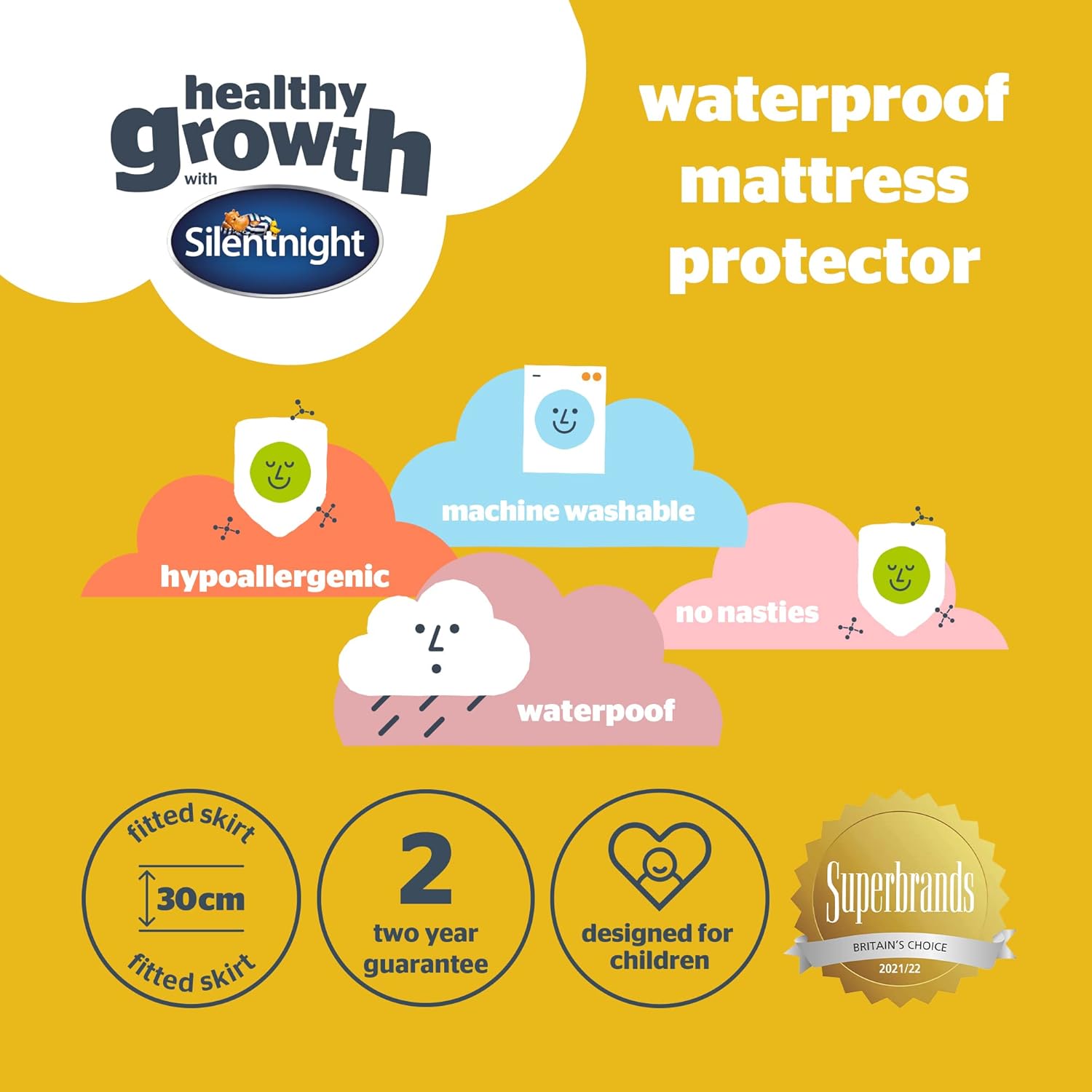 Silentnight Healthy Growth Waterproof Mattress Protector - Deep 30cm Quiet Waterproof Mattress Pad with Fitted Skirt and Soft Touch Cover - Hypoallergenic, Single, White