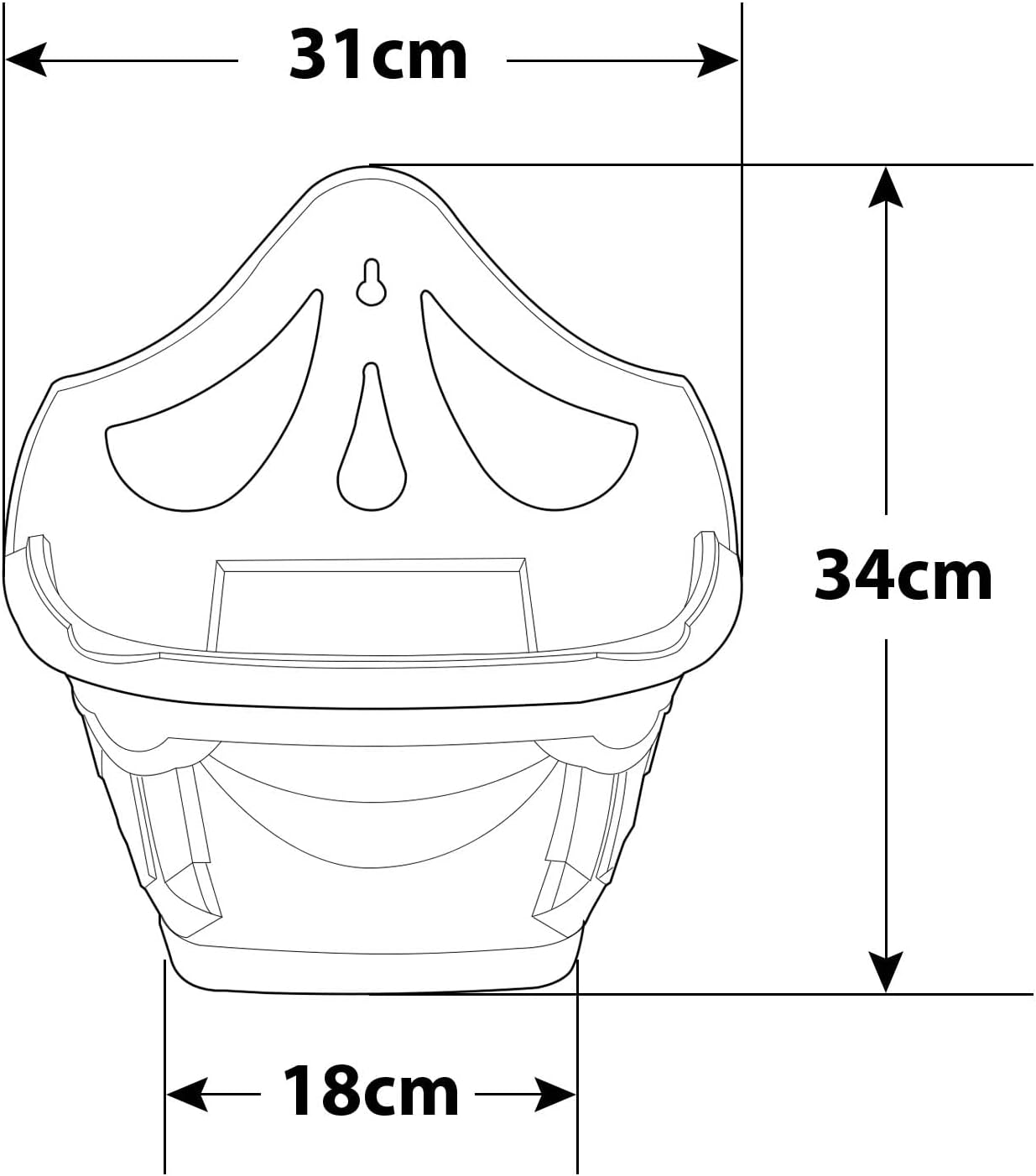 Measures 31 cm length by 34 cm width by 18 cm depth
