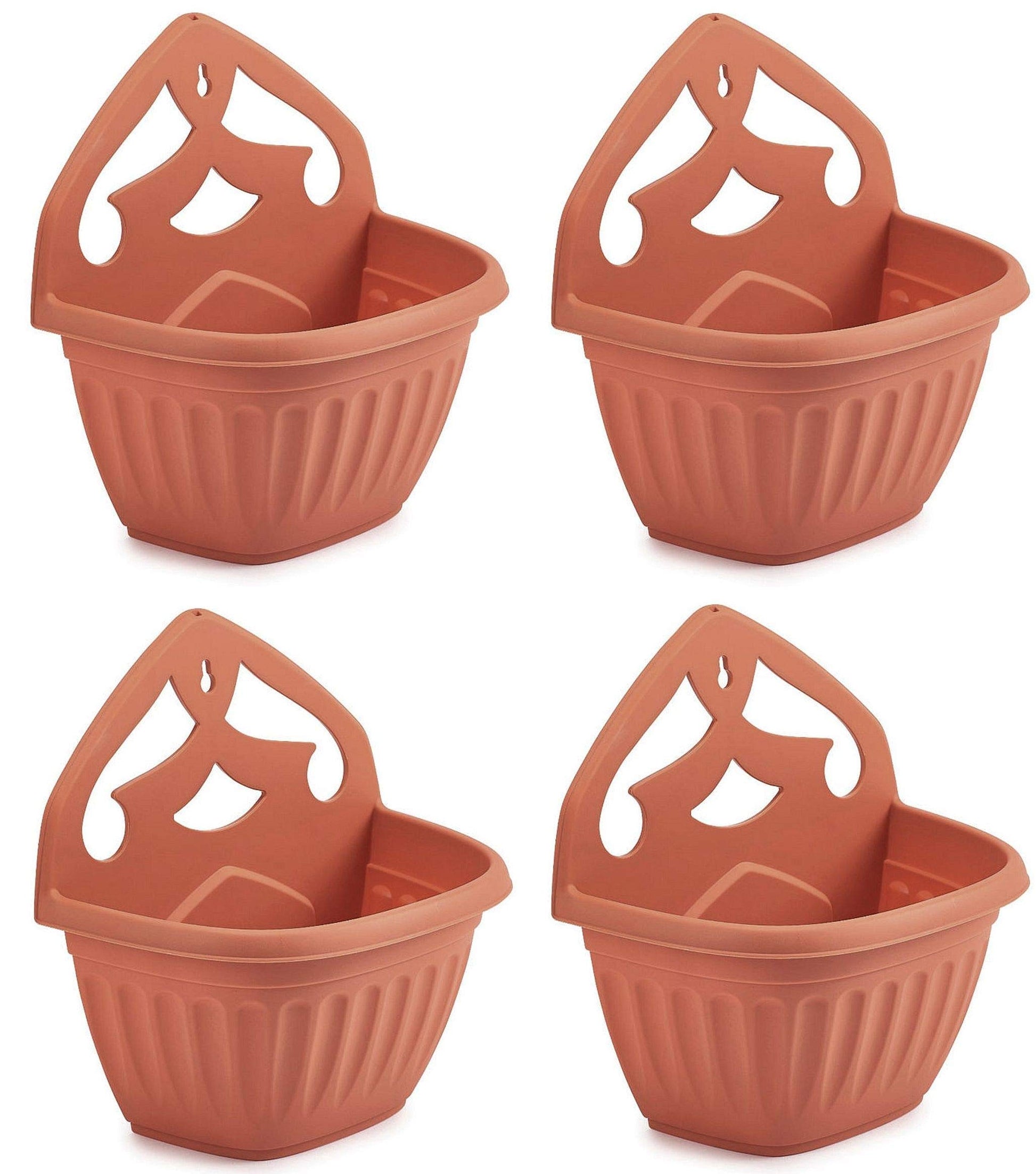 Whitefurze Plastics Athens Terracotta Colour Plastic Wall Hanging Planter Pot (Set of 4)